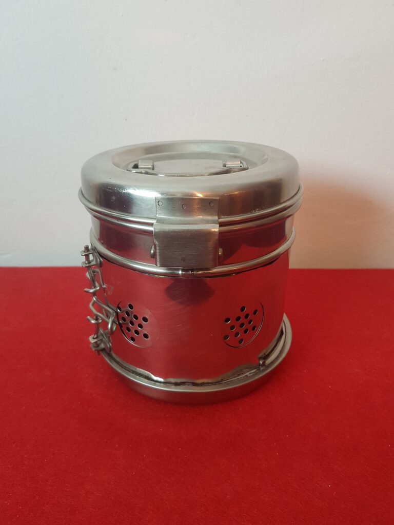 (Durchlöcherte Metalltrommel für die Dampfsterilisation.